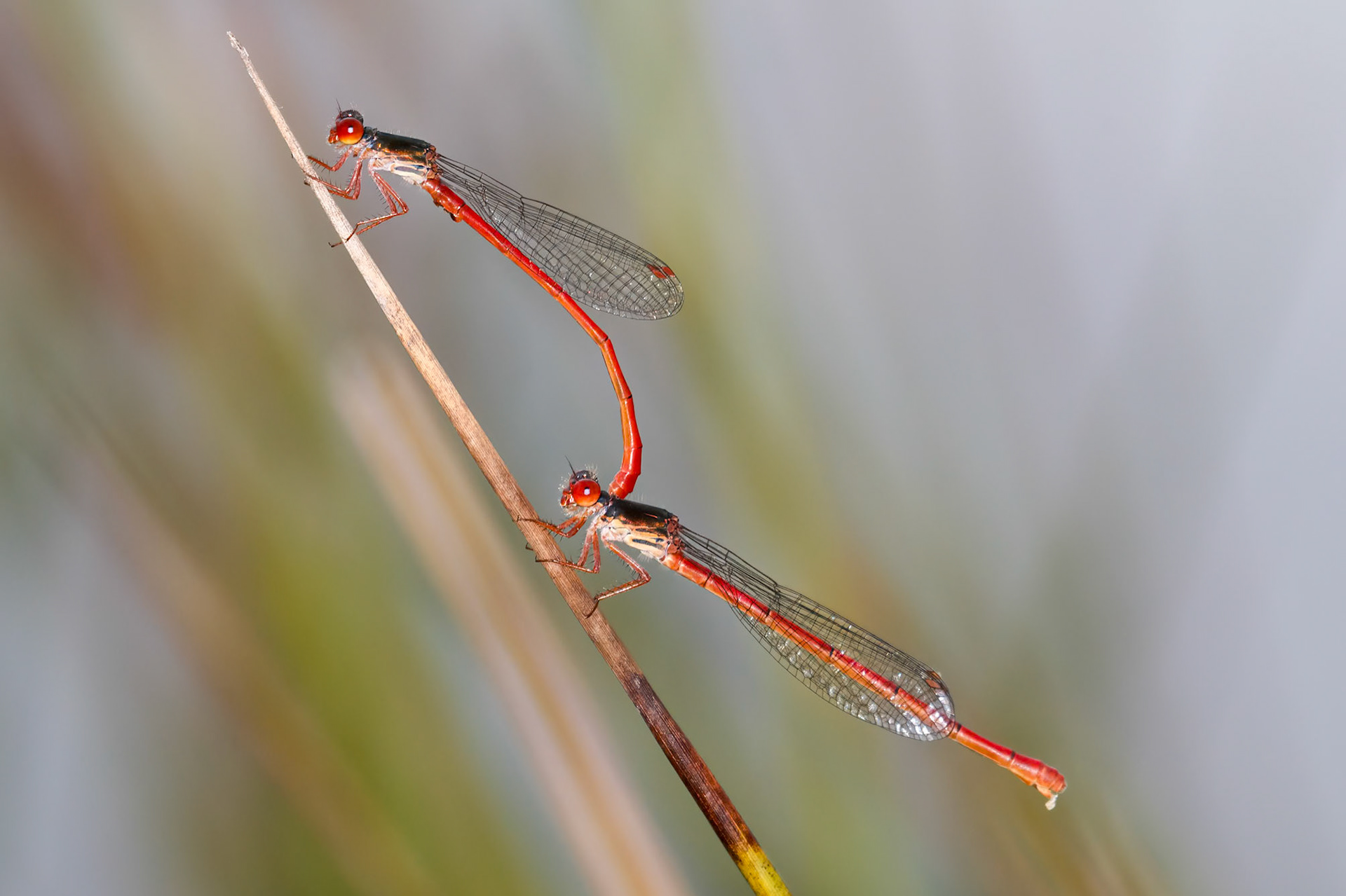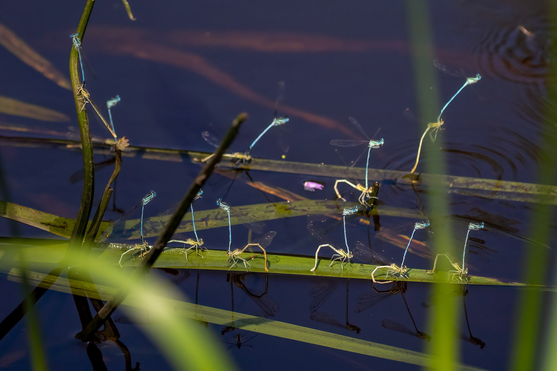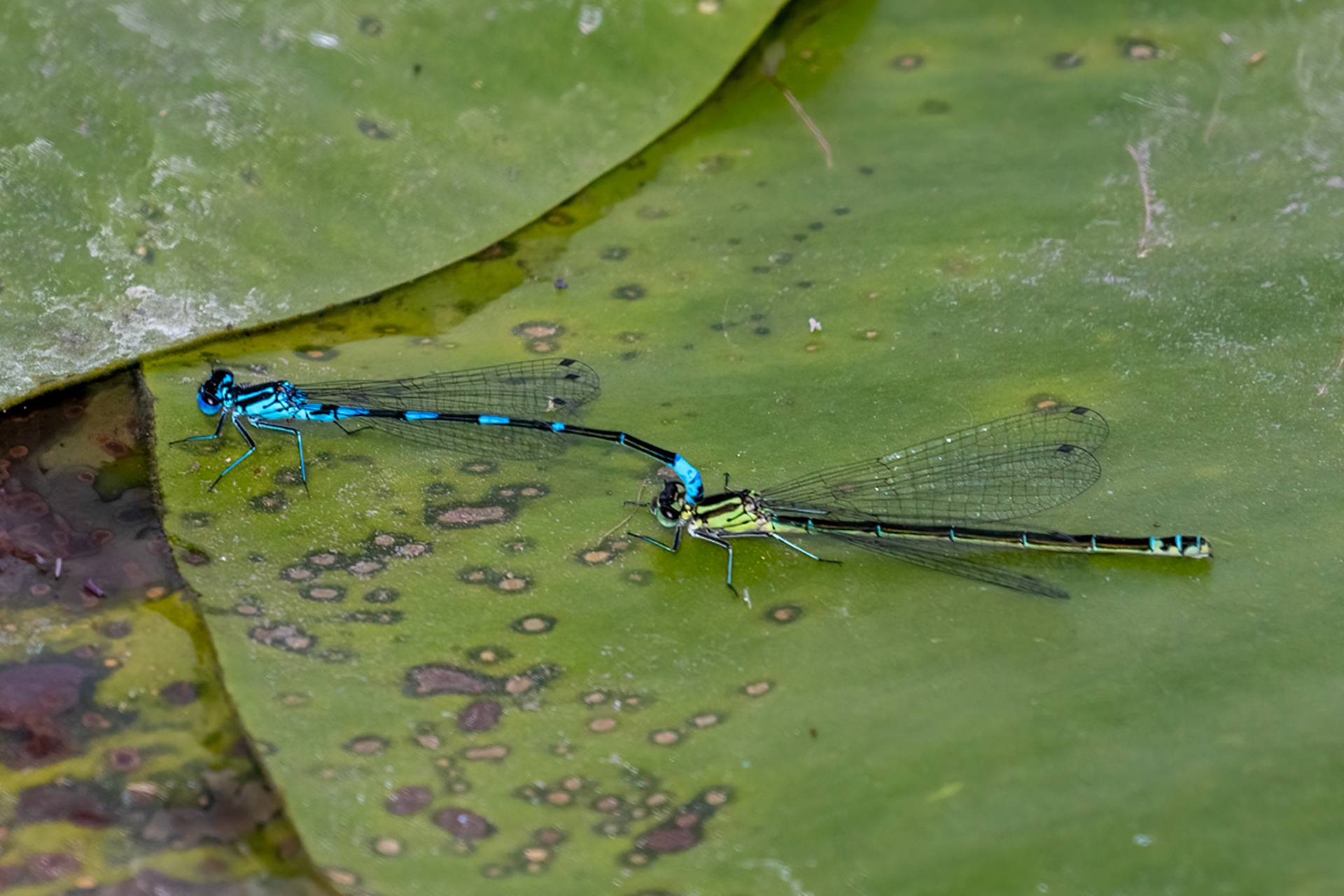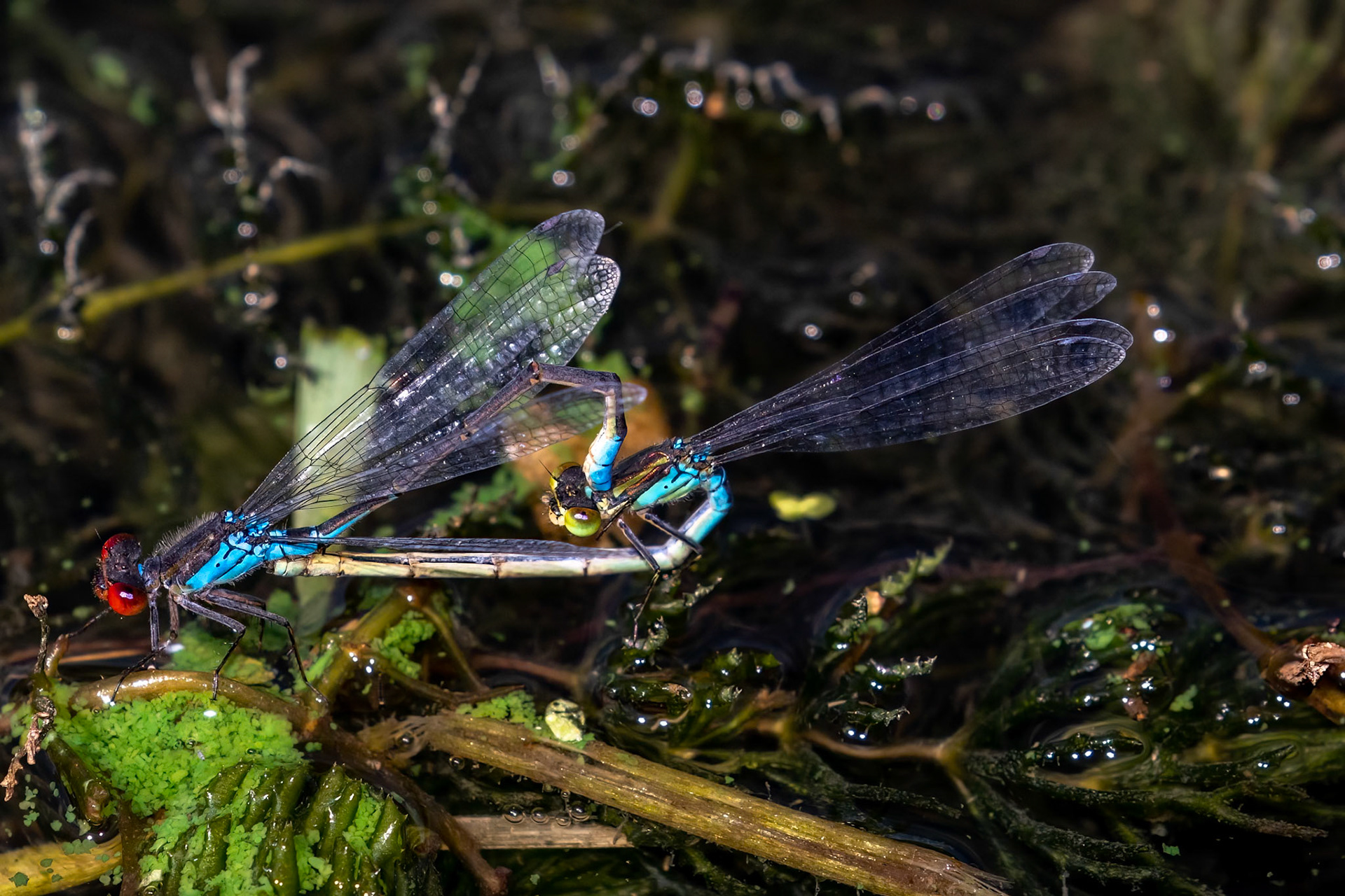 Erythromma viridulum ♂♀ (Kleine roodoogjuffer) , Cothen, Netherlands 2020