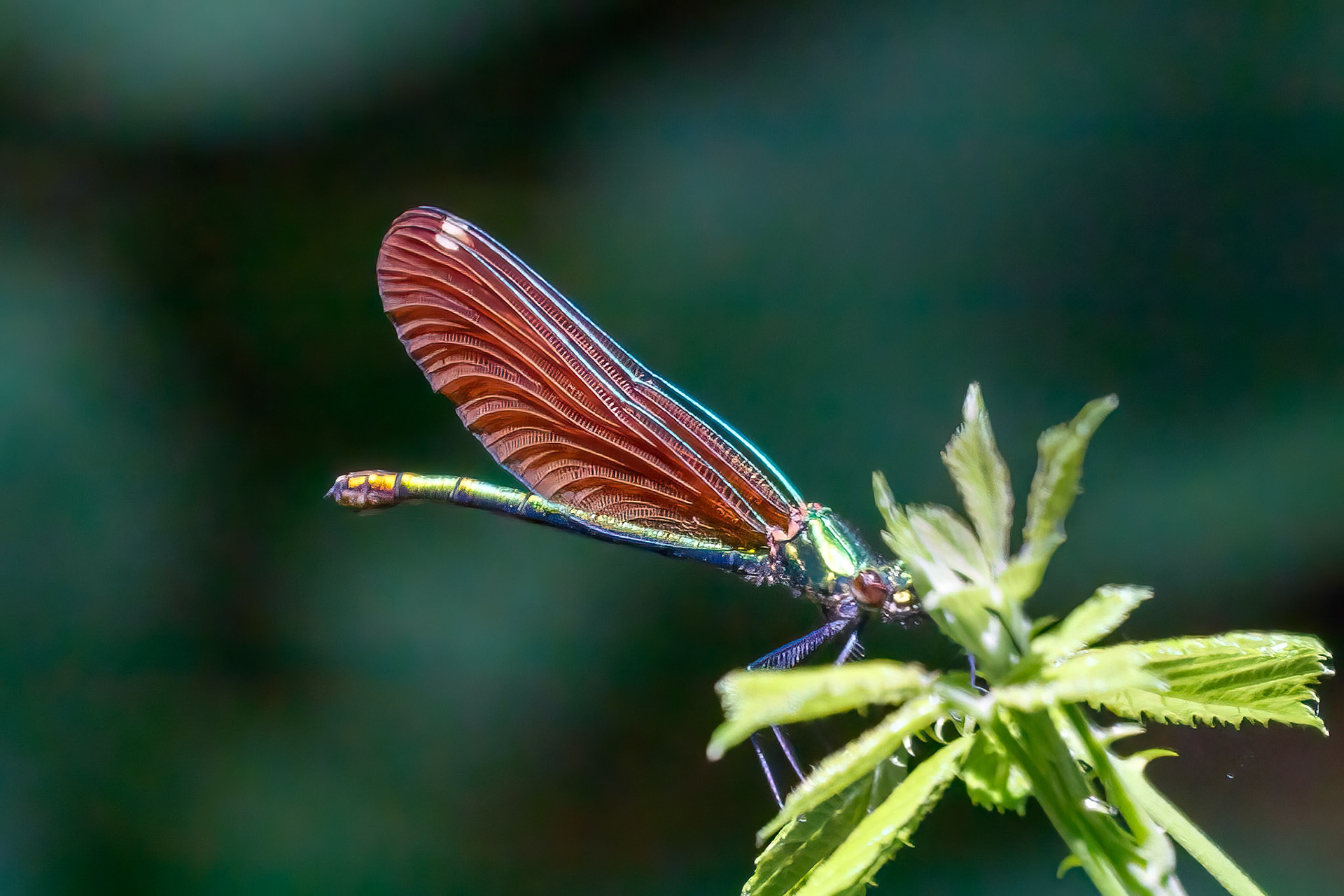 Calopteryx virgo ♀ (Bosbeekjuffer), Buoux, Provence, France 2025