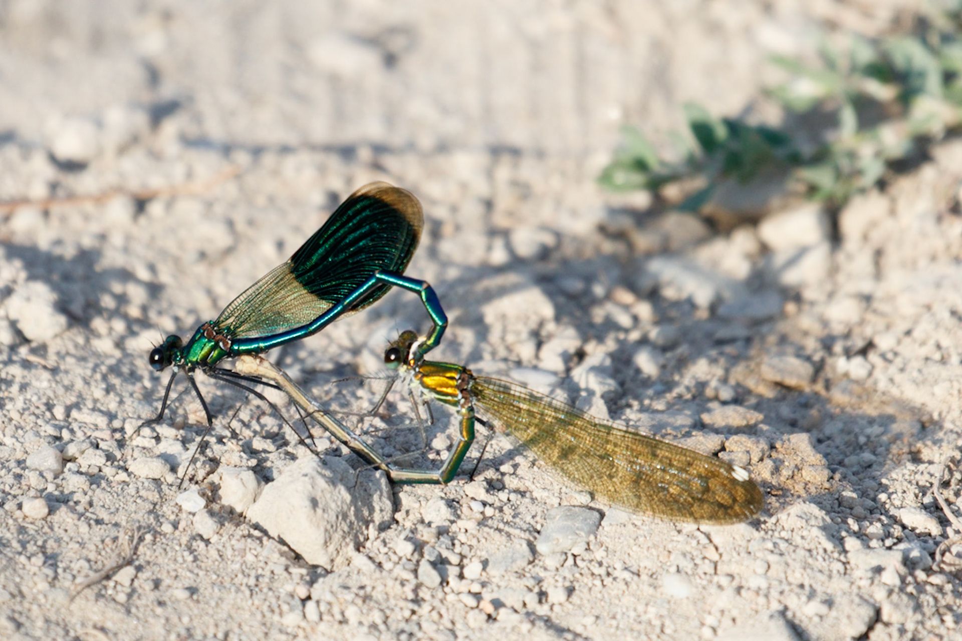 Calopteryx splendens ♂♀ (Weidebeekjuffer), Odijk,, Netherlands 2025
